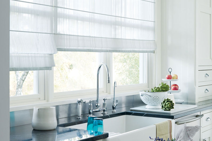 Roman shades call to mind the look of fine draperies while maintaining the simplicity and function of shades. Their practicality and versatility can complement almost any décor. Choose a flat-folded style for orderly, neat lines or a looped style for dramatic, billowing folds like a sophisticated evening gown. Choose semi-sheer or translucent fabric for a light, elegant appearance or a heaver material for a more striking, luxurious look with near-complete room darkening privacy. Our roman shades products offer hundreds of combinations of colors, fabrics and styles to choose from.